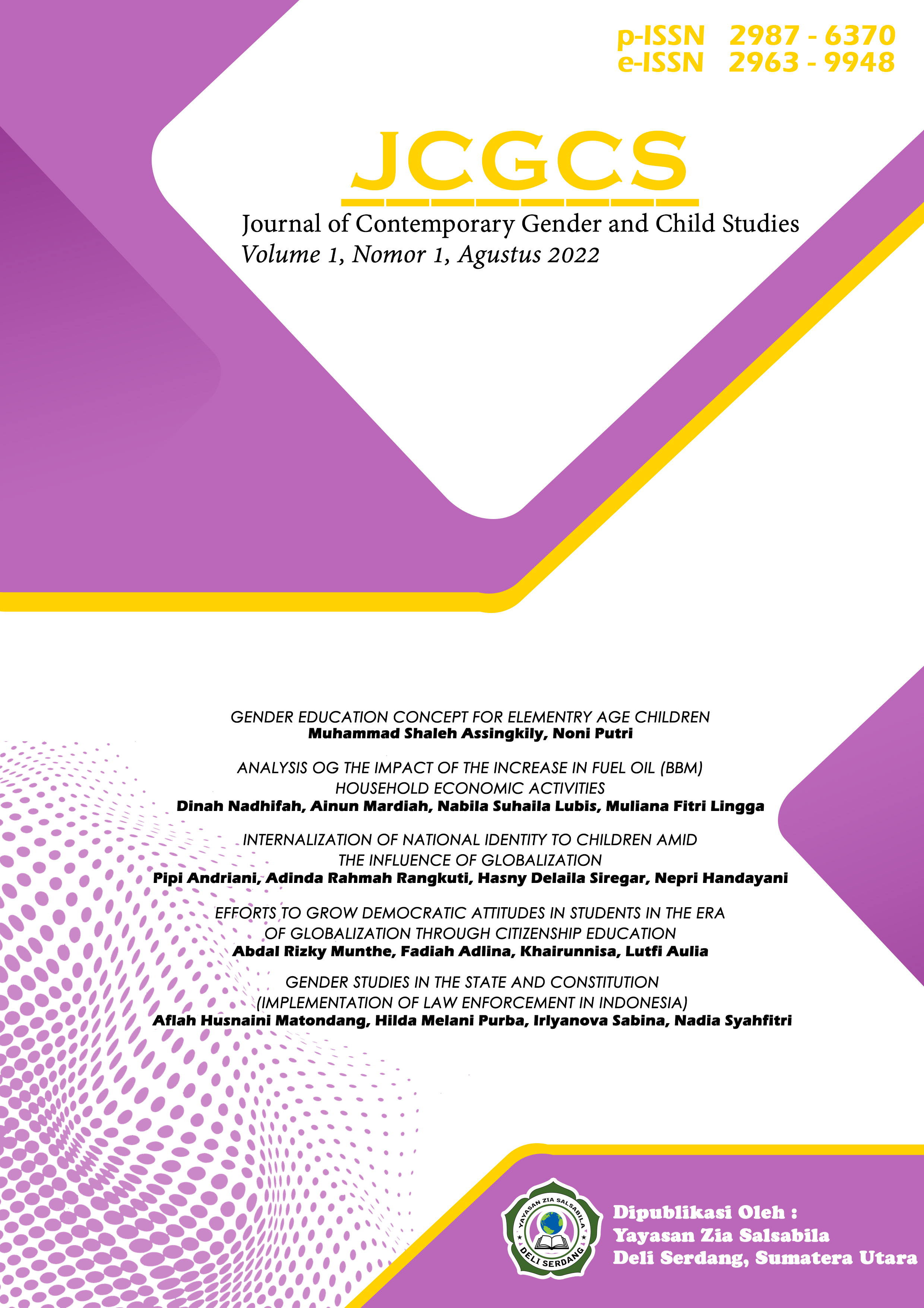 Vol 4 No 3 (2025)Journal of Contemporary Gender and Child Studies published 5 articles in Volume 4 Number 3 December 2025. The manuscripts published in this edition were written by researchers (lecturers, students, scientists, and teachers) in the field of education and Islamic studies. The distribution of the authors of this edition is also representative, were authored/co-authored by 20 authors from 6 countries, starting from Indonesia (UIN Syekh Ali Hasan Ahmad Addary Padangsidimpuan, UIN Fatmawati Sukarno Bengkulu, IAIN Syaikh Abdurrahman Siddik Bangka Belitung, UIN Syarif Hidayatullah Jakarta, UIN Sunan Kalijaga Yogyakarta, UIN Sunan Ampel Surabaya, IAHN Gde Pudja Mataram, Universitas Pendidikan Ganesha, Universitas Sulawesi Tenggara, and IAIN Kendari), Malaysia (Universiti Malaya), China (Central China Normal University), United States (Harvard University), Libya (University of Zawia), and Egypt (Universitas Al Azhar, Kairo).